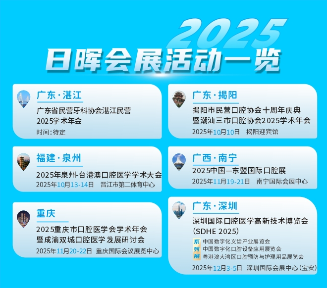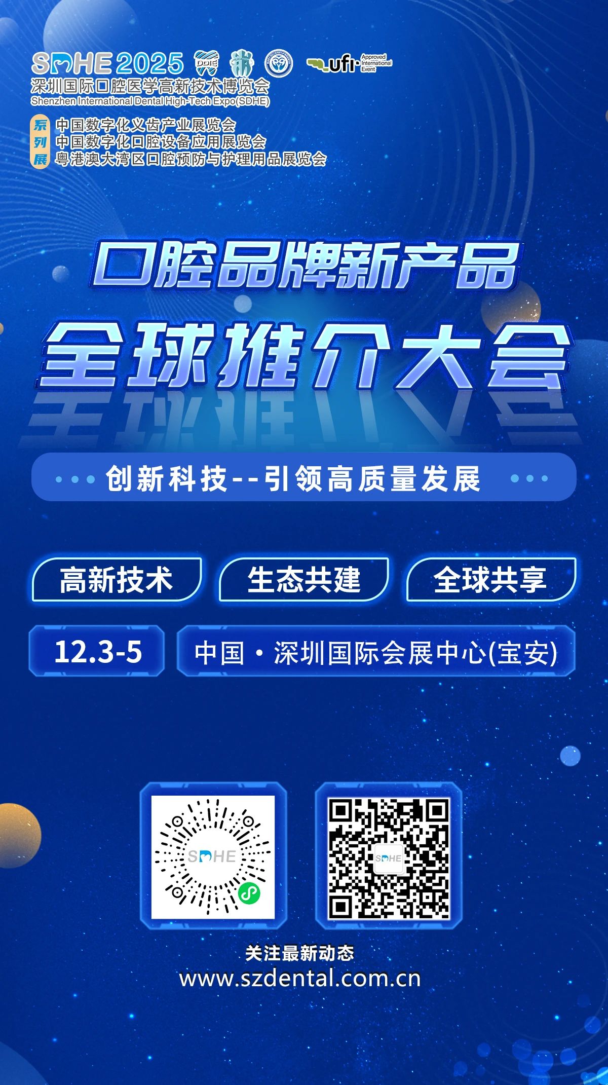 为给国内外口腔医疗卫生单位提供了解国际前沿的口腔医疗技术和最新医疗设备、发现口腔产业窗口的机会,同时也为参展商提供宣传推广新产品、新技术的发布平台。SDHE 2025以“创新科技,引领高质量发展”为主题开设“口腔品牌新产品全球推介大会”,同时欢迎更多的国际品牌加入,共赢市场机遇!组委会将择优选取国内外优秀品牌参与:口腔设备生产厂商、口腔数字化、口腔新材料等,以现场发布、演示的形式,为国内外口腔医疗卫生单位呈现最直观、最全面的新产品新技术的全方位展示。